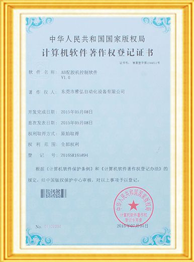 多頭圓形點膠機控制軟件證書