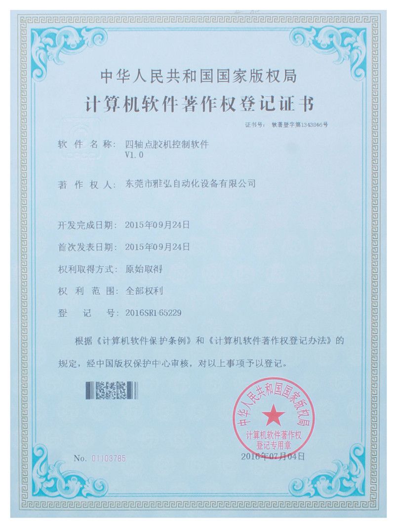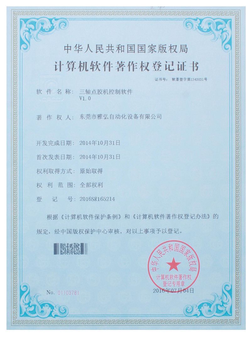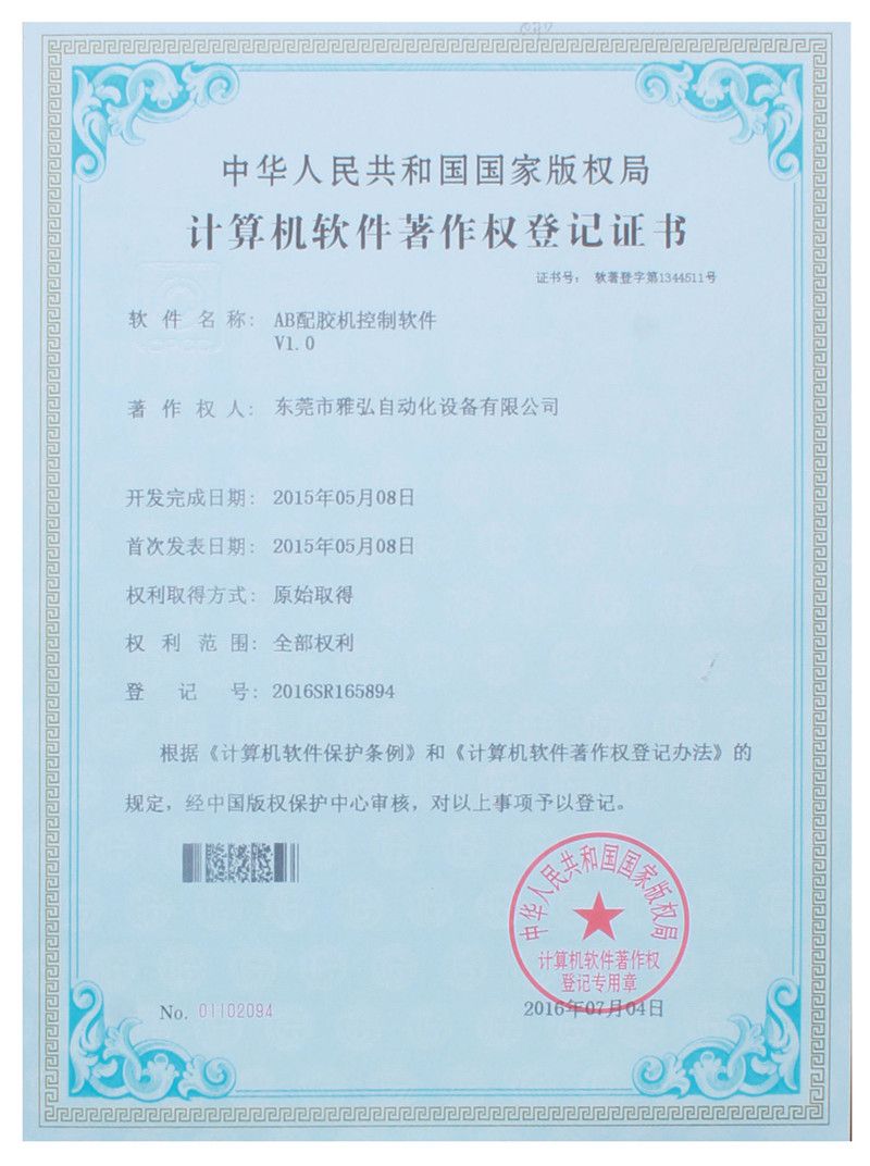 AB配膠機控制軟件證書